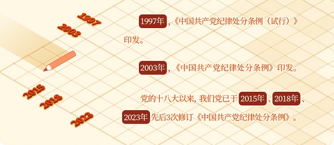 2023年12月,中共中央印發了修訂后的《中國共產黨紀律處分條例》,這是黨的十八大以來,我們黨第3次修訂《中國共產黨紀律處分條例》。下面,我們一起回顧《條例》如何與時俱進,不斷修訂完善。