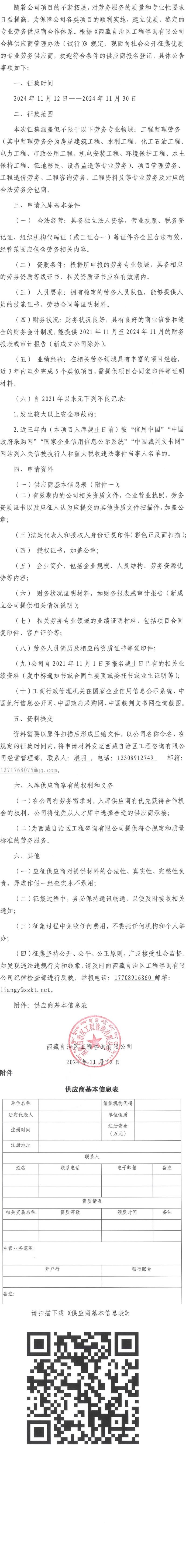 西藏自治區工程咨詢有限公司專業勞務供應商入庫征集公告