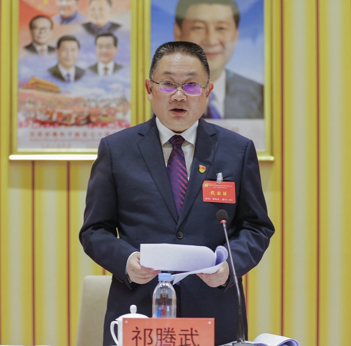在熱烈的掌聲中,祁騰武向大會(huì)作報(bào)告。報(bào)告共分五個(gè)部分:一、工作回顧;二、當(dāng)前形勢(shì)和任務(wù);三、今后工作指導(dǎo)思想和發(fā)展目標(biāo);四、當(dāng)前和今后一段時(shí)間的重點(diǎn)工作;五、全面加強(qiáng)黨的建設(shè)。