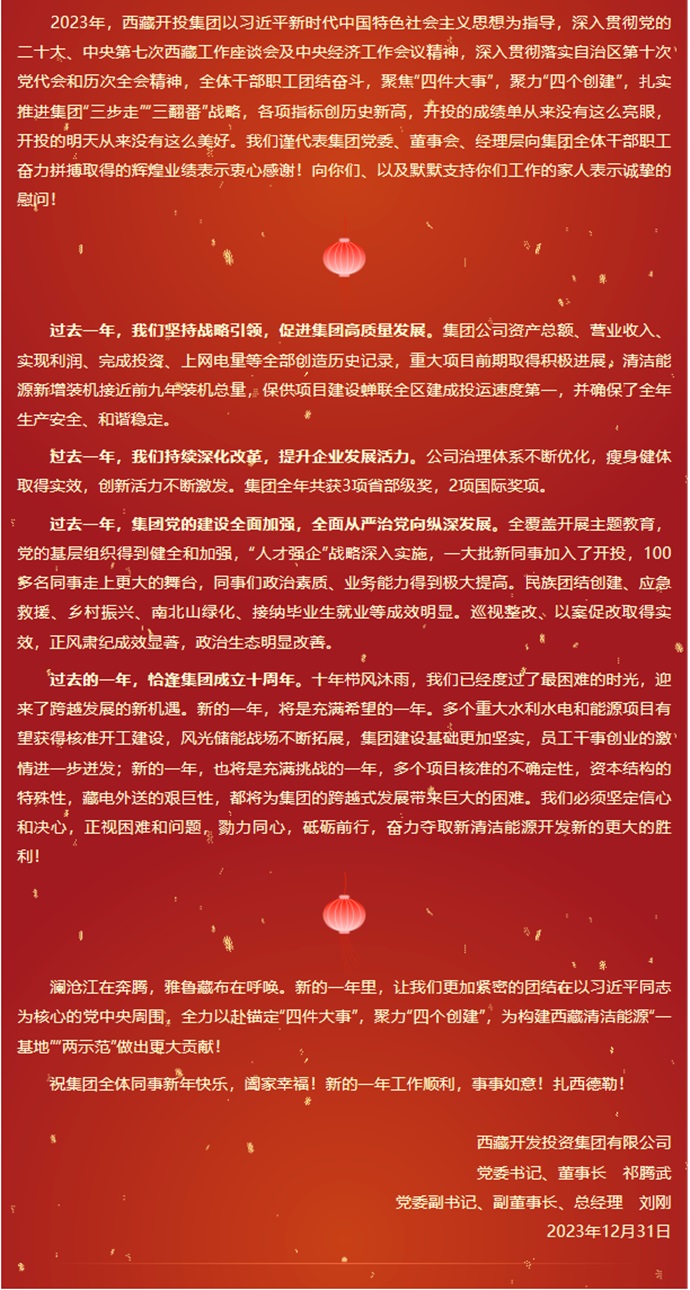 西藏開投集團(tuán)新年賀詞