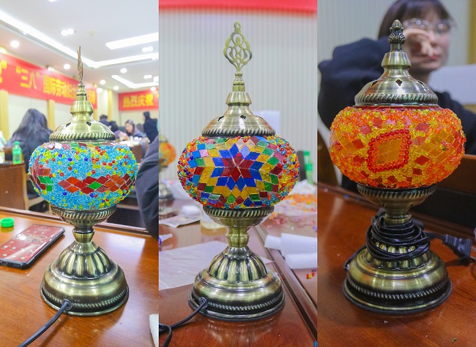 活動中,集團公司工會精心準備了永生玫瑰抱抱熊、土耳其琉璃燈、掐絲琺瑯畫等豐富多樣的手工DIY材料,并特邀經驗豐富的手工藝術指導老師,為女職工們提供專業而細致的指導。在專業老師的引領下,女職工們發揮自己的創造力與想象力,經過一番精心制作,最終呈現出一件件精美絕倫的藝術品。