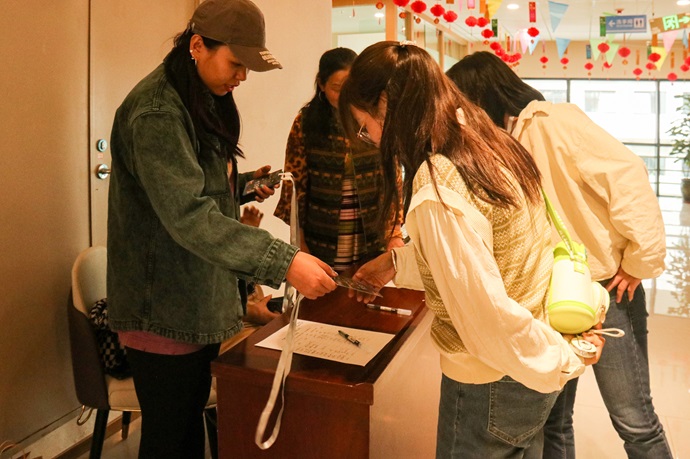 活動開始前,員工及家屬陸陸續續開始簽到入場。在簽到處的旁邊還設置了打卡區,員工及家屬紛紛在此打卡留念。