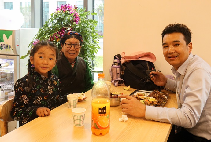 干部職工和家屬們團聚在一起就餐。周田 攝