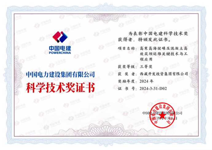 日前,中國電建集團(tuán)公布了2024年度中國電建科學(xué)技術(shù)獎獲獎項(xiàng)目名單,西藏開投集團(tuán)果多水電站創(chuàng)新成果——“高寒高海拔碾壓混凝土高效筑壩關(guān)鍵技術(shù)與工程應(yīng)用”榮獲中國電建科學(xué)技術(shù)獎三等獎。
