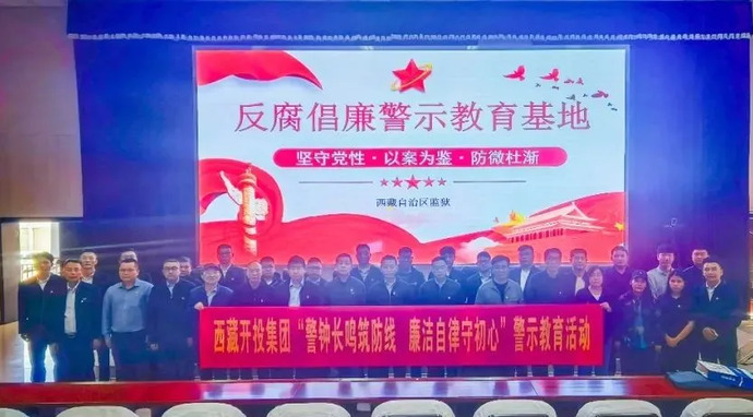 為扎實開展深入貫徹中央八項規定精神學習教育,堅定不移推進全面從嚴治黨向縱深發展,筑牢黨員干部職工拒腐防變思想堤壩,6月26日,西藏開投集團組織黨員干部職工赴西藏自治區監獄管理局廉政警示教育基地開展“警鐘長鳴筑防線,廉潔自律守初心”警示教育活動。集團黨委委員、副總經理溫勇、尼瑪與集團總部、所屬單位黨員干部職工共70余人參加活動。