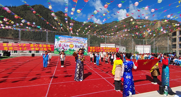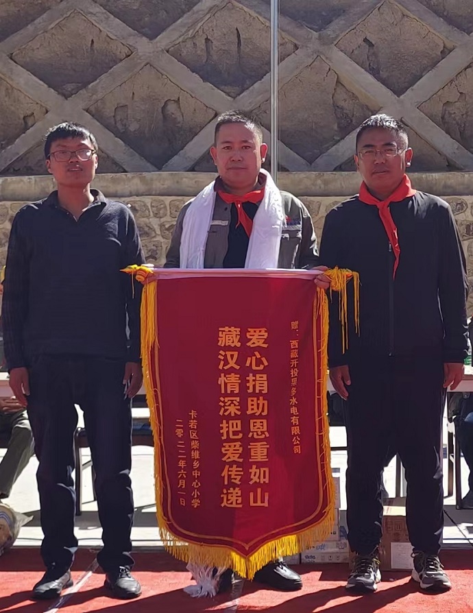 果多水電公司代表張二林同志作了題為“祖國的未來,民族的希望”的講話,并代表果多水電公司給學校捐贈了學習用品,足球、排球、羽毛球等,勉勵孩子們要樹立遠大理想,努力學習,健康成長,以優(yōu)異的成績回報社會、回報祖國。柴維鄉(xiāng)小學贈送了“愛心捐助恩重如山,藏漢情深把愛傳遞”的錦旗,感謝果多水電公司對學校的關心支持幫助。