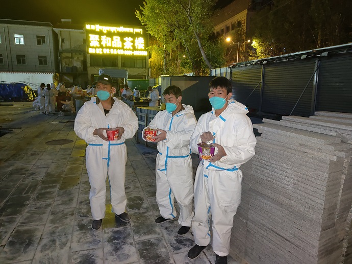 9月15日,接到自治區國資委及西藏開投集團公司通知,拉薩新建方艙醫院需工程類人員支援,酒店緊急抽調工程類專業人員4人前往支援,從15日21時到次日上午9時完成了支援任務。12個小時的忙碌下來,每個人都是汗流浹背,可沒有人抱怨,沒有人喊苦喊累。