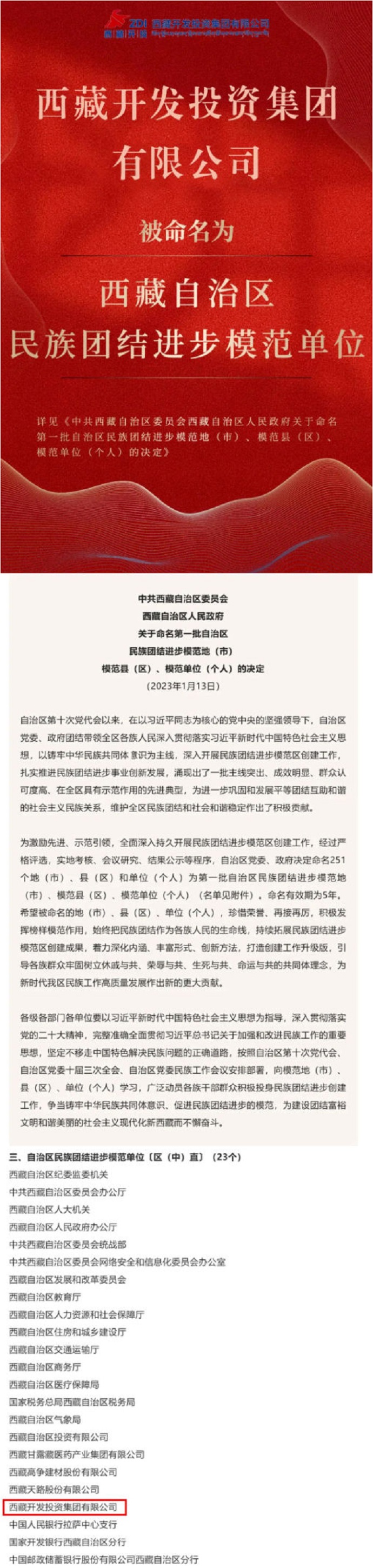 捷報傳來 _ 西藏開投集團被命名為“西藏自治區民族團結進步模范單位”
