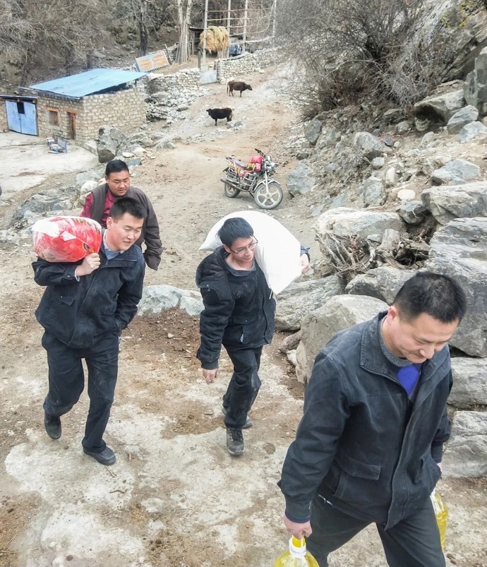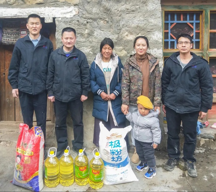 慰問人員深入到困難家庭,詳細了解他們的生活狀況及面臨的困難,送上米、面、油等生活必需品,并致以藏歷新年的問候和祝福。