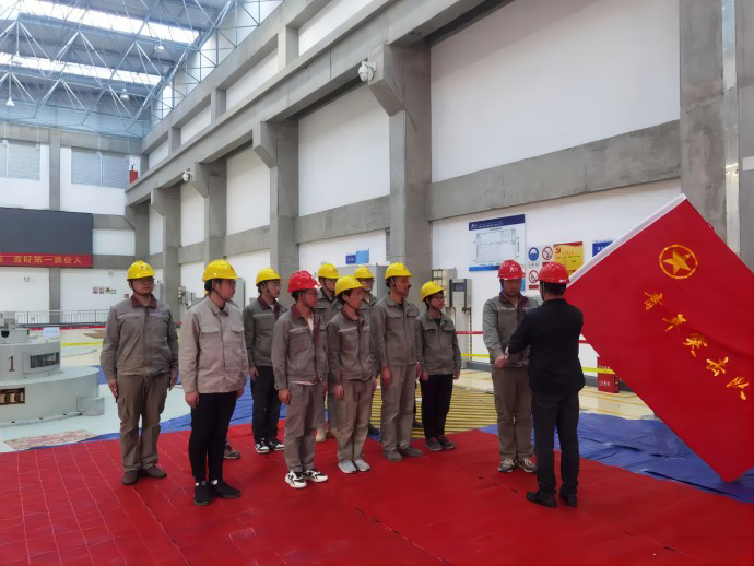 會議全面部署各項檢修任務,動員現場參會人員統一思想、凝聚共識、明確任務、落實責任,全力以赴打好本次檢修攻堅戰。動員結束后,覺巴水電廠為“青年突擊隊”舉行授旗儀式。