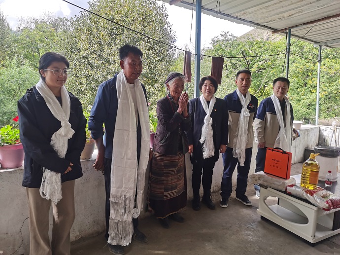 在活動(dòng)中,嘎堆水電公司慰問(wèn)了3戶嘎堆村的低保戶及五保戶。每到一戶,慰問(wèn)組都會(huì)與老人促膝談心,細(xì)致了解他們的健康和生活狀況,鼓勵(lì)他們樹(shù)立信心,樂(lè)觀生活,積極克服困難。