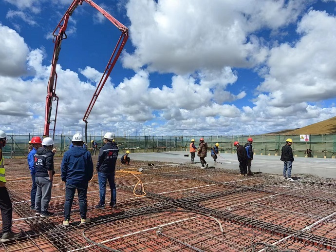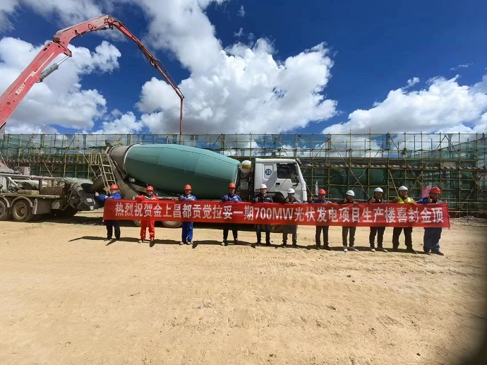 9月28日,隨著生產樓屋面板最后一平方米混凝土澆筑完成,金上昌都貢覺拉妥一期700MW光伏項目生產樓順利封頂,項目參建單位辛苦勞作成果終于可以交上第一份答卷。