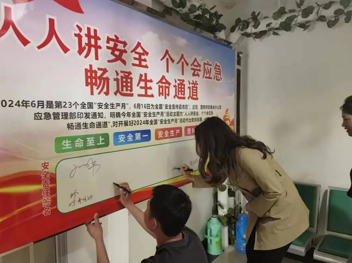 會議以《深入學習貫徹習近平關于應急管理的重要論述》為重點開展集中宣講和專題研討,宣貫了《西藏自治區安全生產條例》等相關文件精神,觀看了“安全生產月”主題宣傳片、《安全生產 責任在肩》警示教育片,切實提升干部職工安全責任意識和應急避險能力。會議結束后,舉行了主題展板簽名儀式,動員全體員工履職擔當,自覺把安全生產工作記在心上、抓在手上、扛在肩上、落在實處,與會人員在主題展板前簽字承諾。