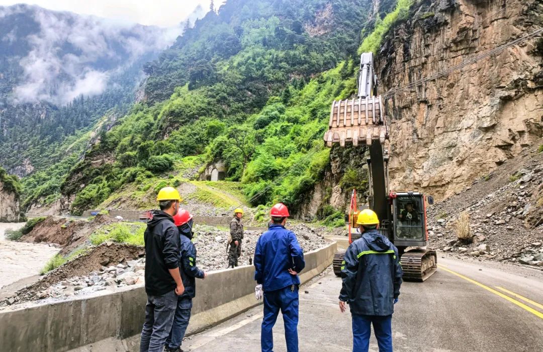 面對這一緊急情況,金橋水電站迅速啟動防洪度汛應急預案,在雨中開展緊急修復工作。現場工作人員身著雨衣,腳踩泥濘,專業技術人員對存在問題的廠壩線進行評估,制定出修復方案,工程技術人員也對隱患部位進行勘察和評估,全力應對輸入桿的扶正、填土、夯實等一系列操作。雨中各種工程設備轟鳴作響,搶修人員們緊密配合,爭分奪秒地推進修復工作。