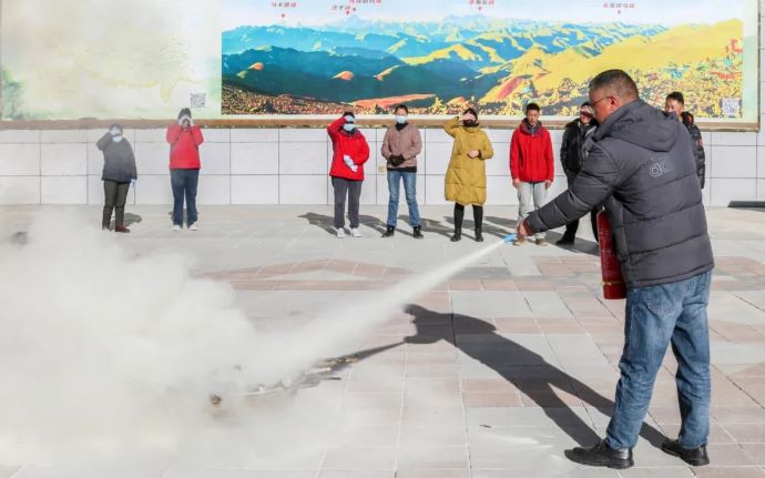 本次演練活動特邀日喀則市消防救援支隊消防員進行消防安全知識授課,深度剖析了近年來發生的典型火災案例,重點圍繞疏散逃生技能、消防設施器材使用、液化罐著火處理、火災撲救等環節進行實際操作。