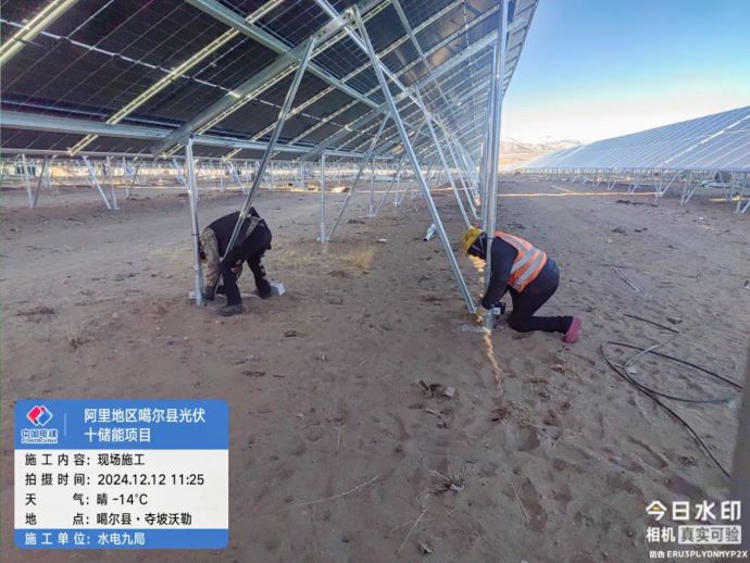 ▲噶爾光伏發電項目,現場施工人員加固光伏板支架。