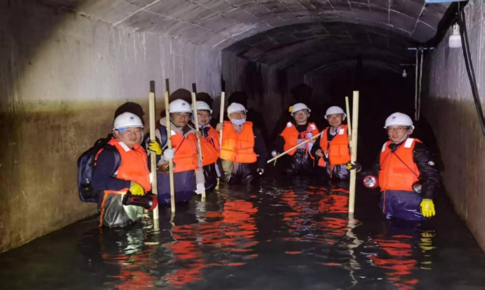 旁多水利樞紐工程灌溉輸水洞排查現(xiàn)場(chǎng)。