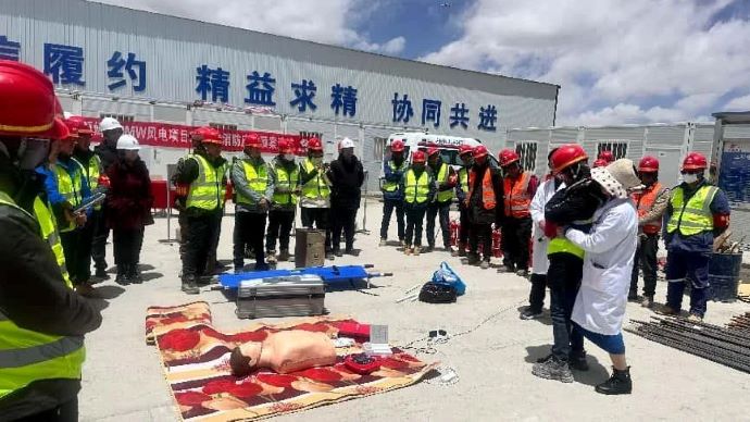 西藏開投色尼區曲果嘎姆200MW風電項目平均海拔4750m,氣候多變,自然環境惡劣。為切實提升項目安全生產應急能力,強化一線人員安全意識和救護技能,近日,那曲河水電公司色尼項目指揮部組織各參建單位開展了消防逃生疏散演練及應急救護技能培訓。