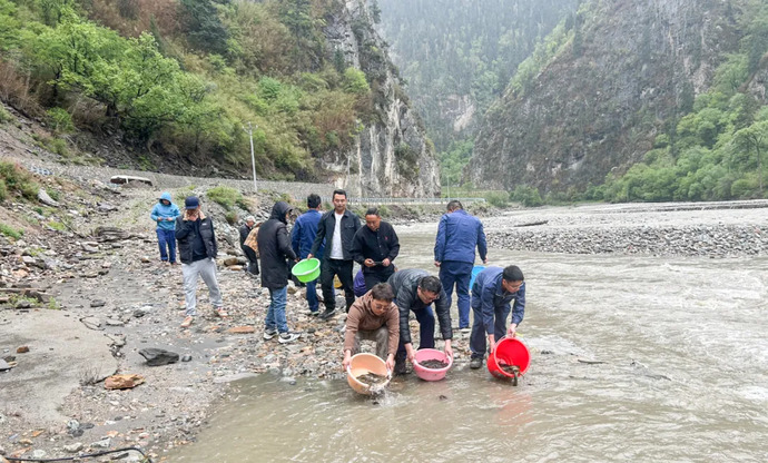 在放流活動現場,共投放拉薩裸裂尻、異齒裂腹魚各三千余尾,將有效補充流域野生魚類資源,對改善水生生物種群、維系易貢藏布流域生態鏈完整具有重要意義。