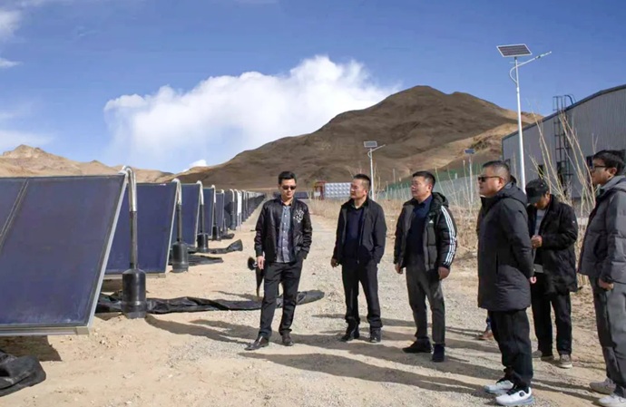 10月25日,西藏阿里地區兆源同硼礦業科技公司常務副總經理劉曉亮赴西藏開投日土縣城集中供暖項目現場考察,西藏開投清潔能源供暖公司董事長姚輝等陪同,雙方就高原地區太陽能供暖技術及項目合作事宜進行交流。