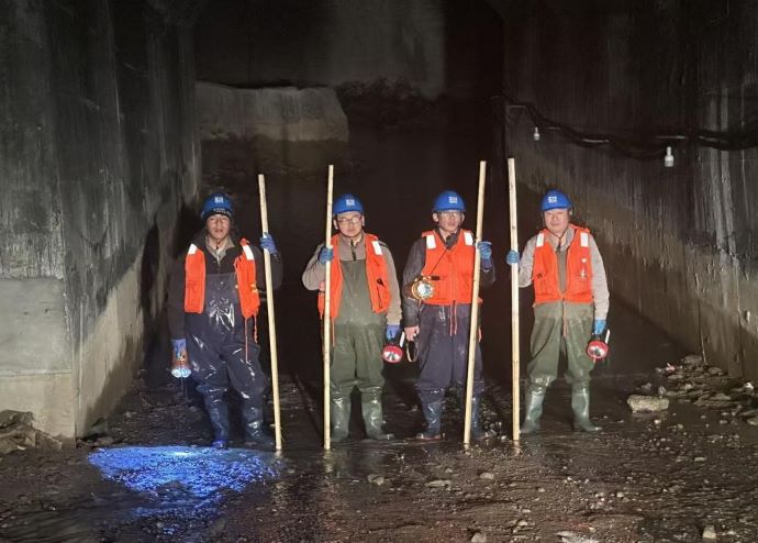 12月3日,公司組織對全長16.3公里的灌溉輸水洞開展全面檢查,重點排查長期運行中可能存在的凍融破壞、巖體應力變化等隱患。經細致檢測,輸水洞整體運行狀態良好,完全滿足今冬明春供水需求,為后續灌溉工作奠定了堅實的安全基礎。
