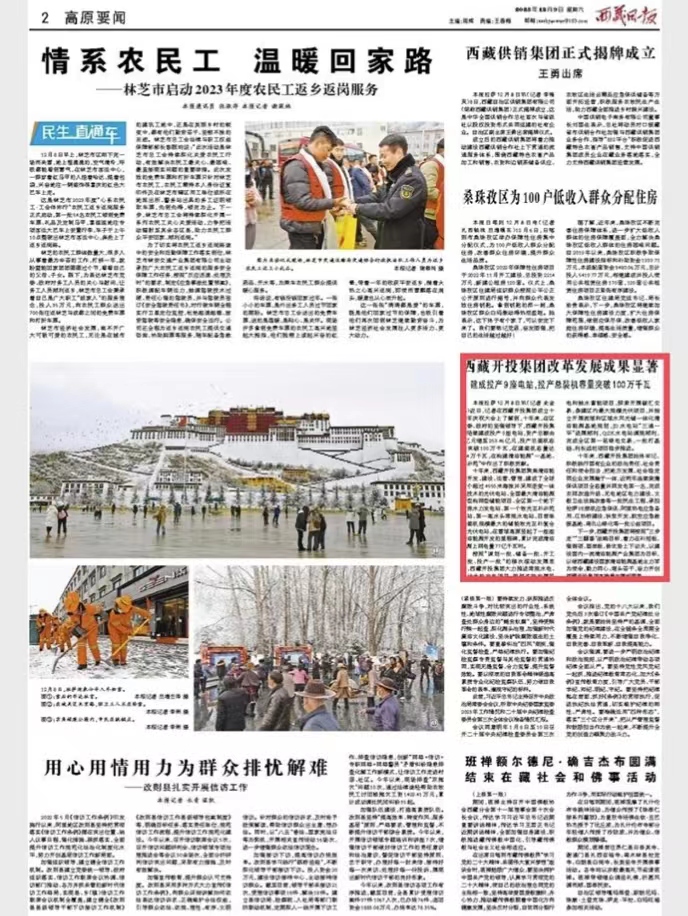 編者按:12月9日,西藏日報第二版高原要聞欄目報道了《西藏開投集團改革發展成果顯著建成投產9座電站,投產總裝機容量突破100萬千瓦》文章。全文如下: