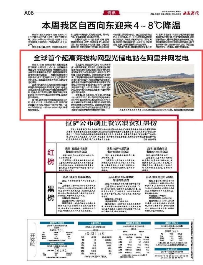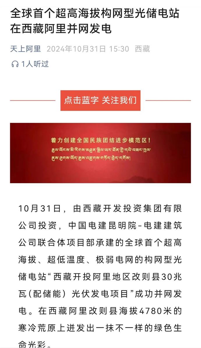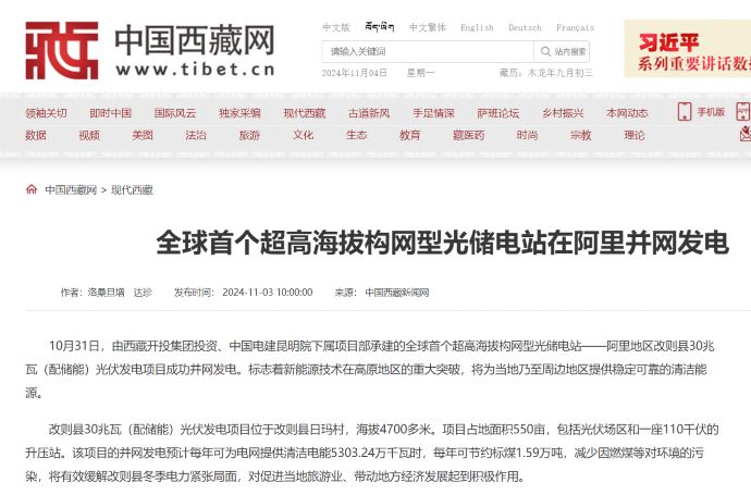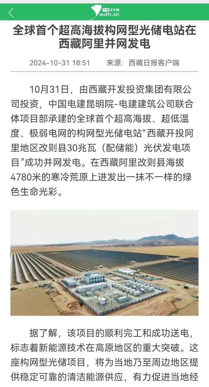 媒體報道丨全球首個超高海拔構網型光儲電站在西藏阿里并網發電
