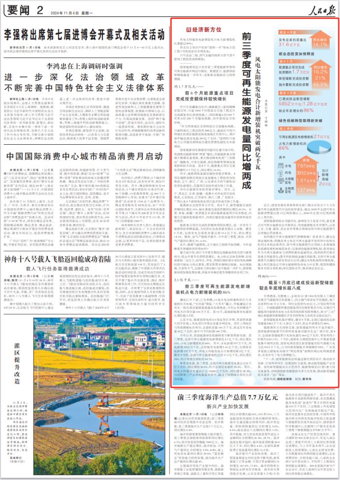 前三季度可再生能源發(fā)電量同比增兩成