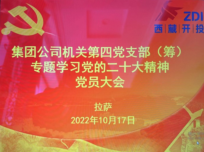 10月17日下午,中共西藏開發(fā)投資集團有限公司機關(guān)第四支部委員會組織全體黨員開展黨的二十大精神首次專題學(xué)習(xí),重點學(xué)習(xí)討論黨的二十大報告。集團公司黨委委員、副總經(jīng)理、工會主席、機關(guān)黨委書記溫勇同志以普通黨員身份參加學(xué)習(xí)。