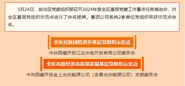捷報傳來丨西藏開投這些黨組織被評為2023年度全區(qū)基層黨組織示范點(diǎn)