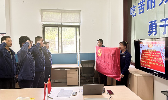 活動(dòng)伊始,莊嚴(yán)的升國(guó)旗、唱國(guó)歌儀式在嘎堆水電公司生活營(yíng)地舉行,鮮艷的五星紅旗在全體黨員和員工的注目禮中冉冉升起,雄壯的國(guó)歌聲響徹云霄。接著,嘎堆水電公司黨支部組織新黨員在黨員活動(dòng)室舉行了入黨宣誓儀式,并開(kāi)展了重溫入黨誓詞活動(dòng)。隨后,嘎堆水電公司黨支部書(shū)記謝鵬為大家上了一堂生動(dòng)的專題黨課。黨課圍繞黨的創(chuàng)新理論、黨的基本知識(shí)、黨的百年奮斗史、新時(shí)代偉大成就等方面展開(kāi),引導(dǎo)黨員們奮進(jìn)新征程、建功新時(shí)代。最后,黨員干部職工齊聚一堂,暢談黨的光輝歷程和豐功偉績(jī)。大家紛紛表示,立足崗位比貢獻(xiàn),進(jìn)一步發(fā)揮好黨組織的戰(zhàn)斗堡壘作用和黨員的模范表率作用。