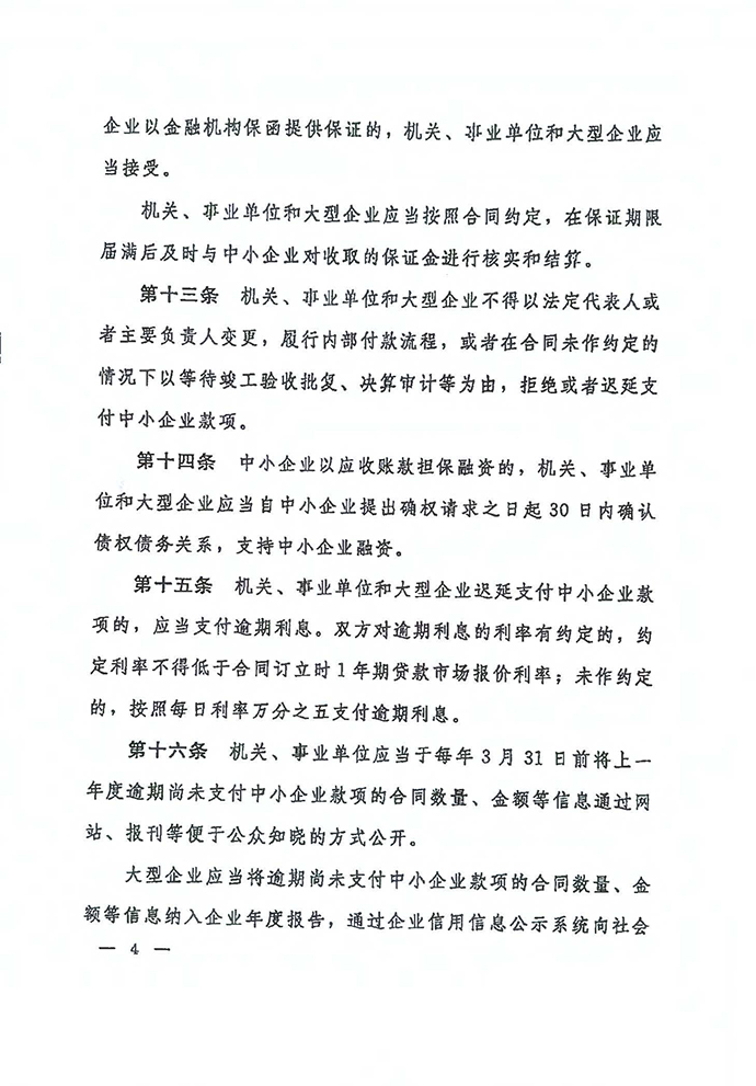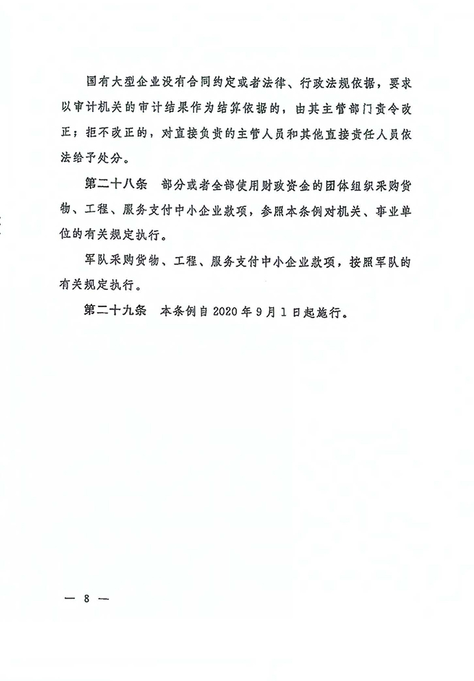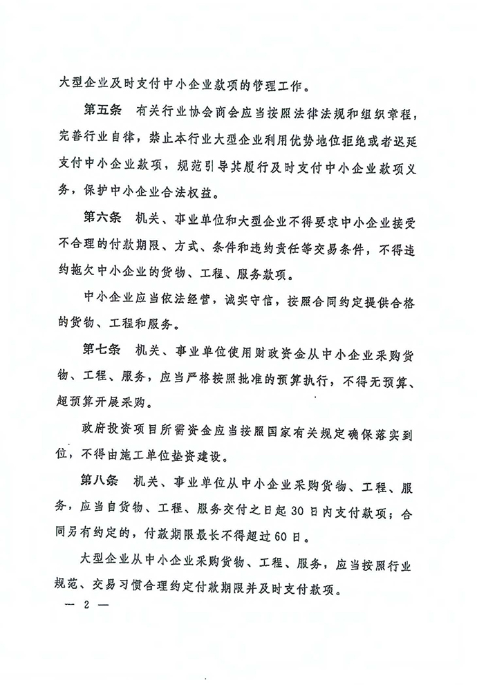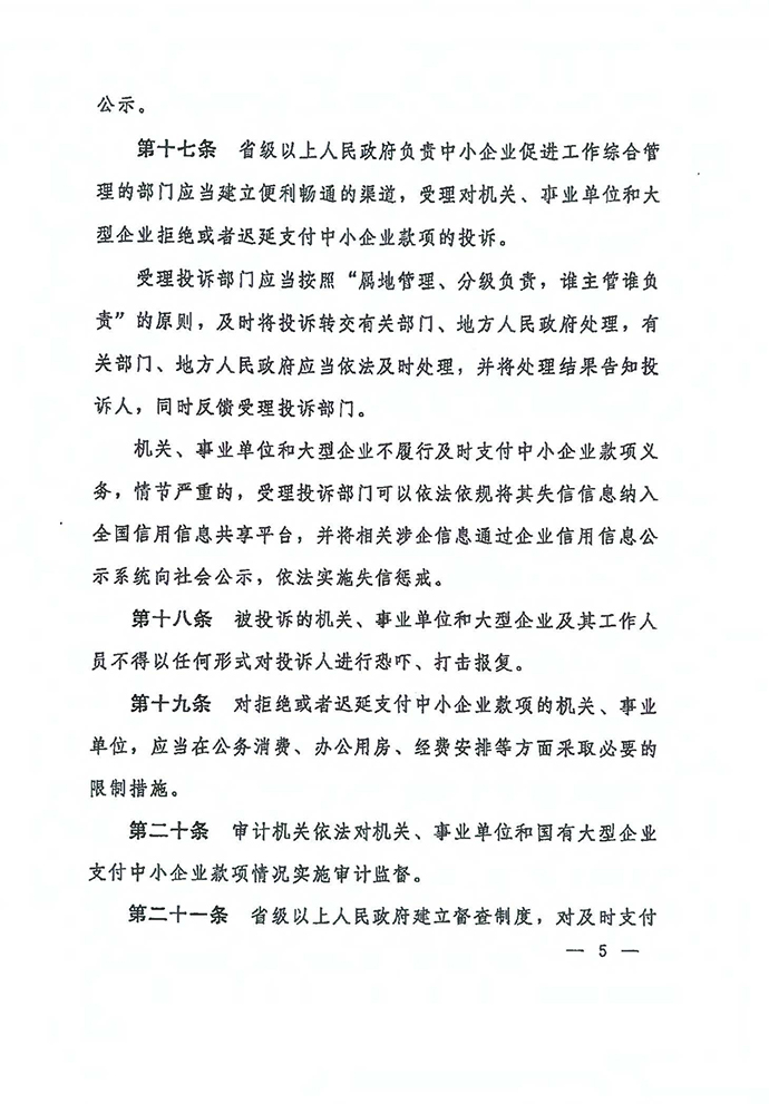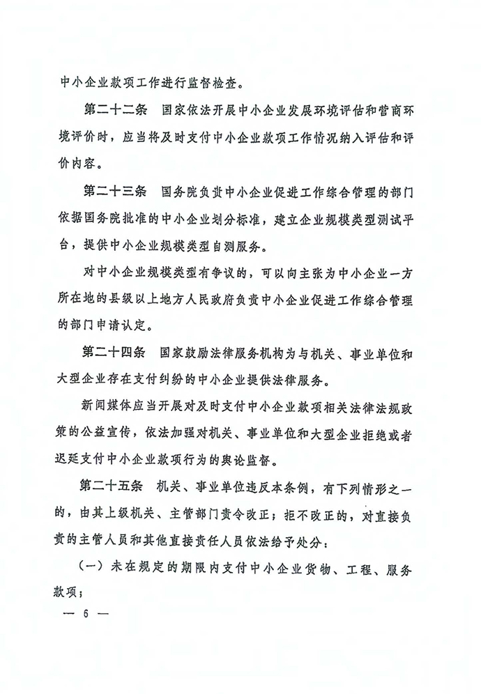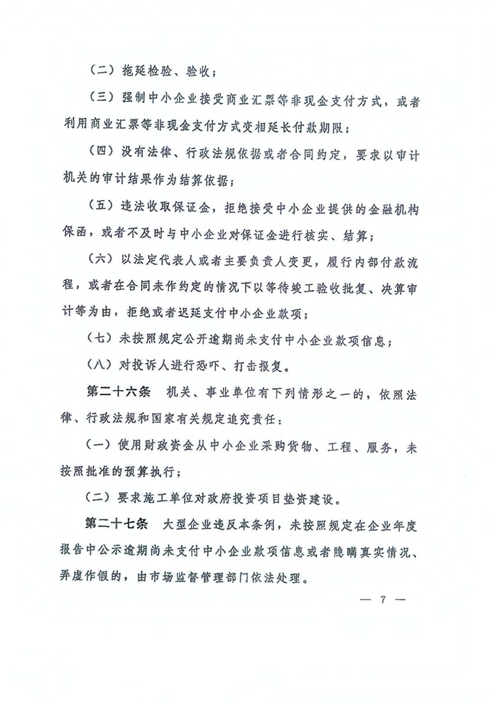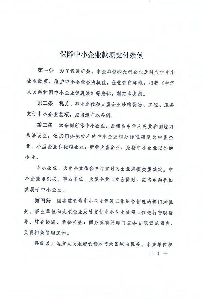 保障中小企業款項支付條例