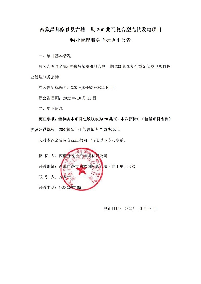 物業管理服務招標更正公告