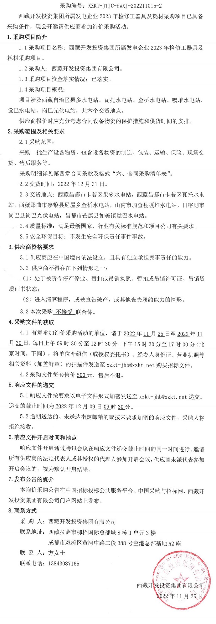西藏開發投資集團所屬發電企業2023年檢修工器具及耗材