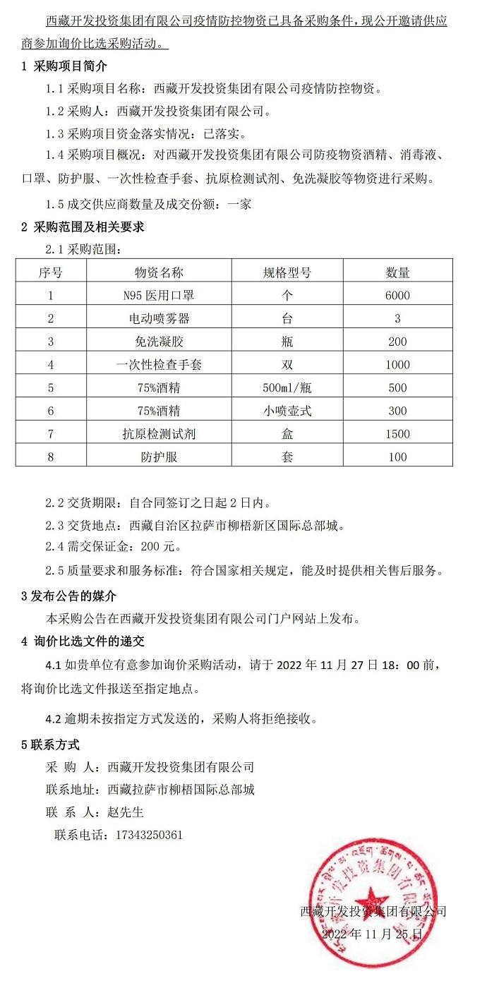 西藏開發(fā)投資集團(tuán)有限公司疫情防控物資
