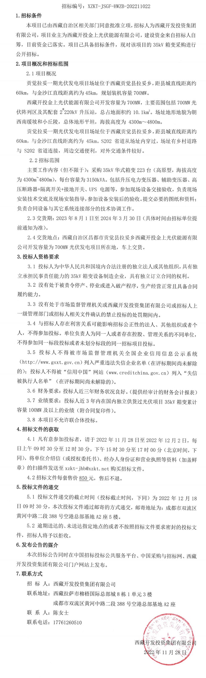 35kV箱變采購招標公告