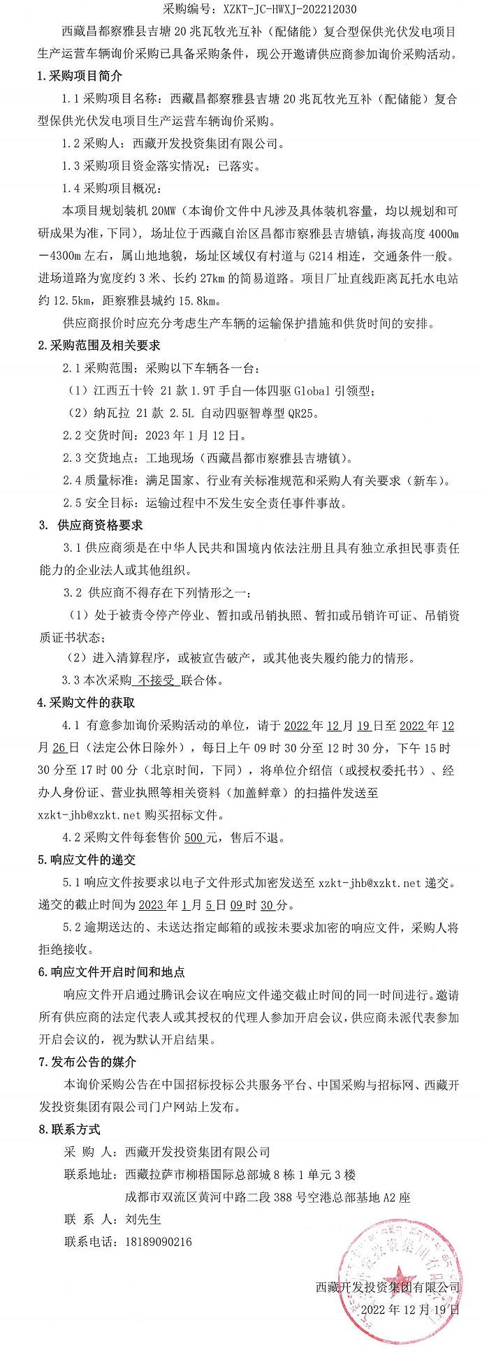 光伏發電項目生產運營車輛詢價采購公告