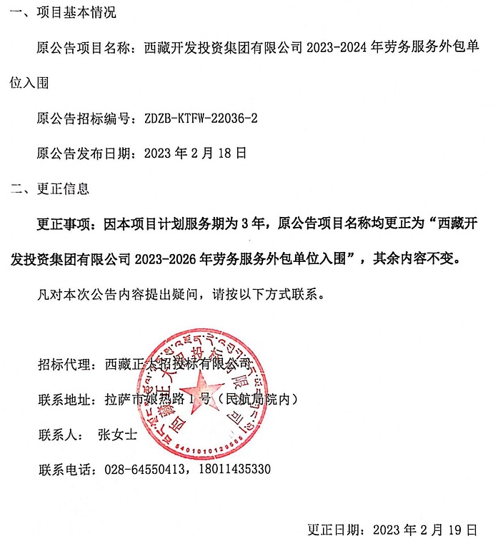 勞務服務外包單位入圍更正公告