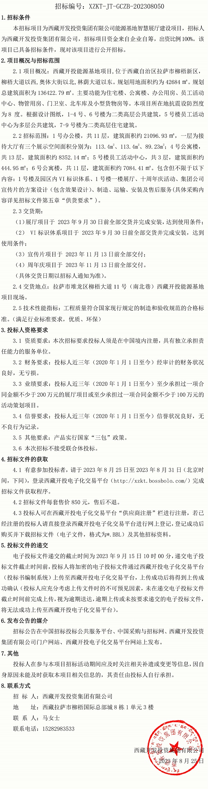西藏開發投資集團有限公司能源基地智慧展廳建設項目招標公告