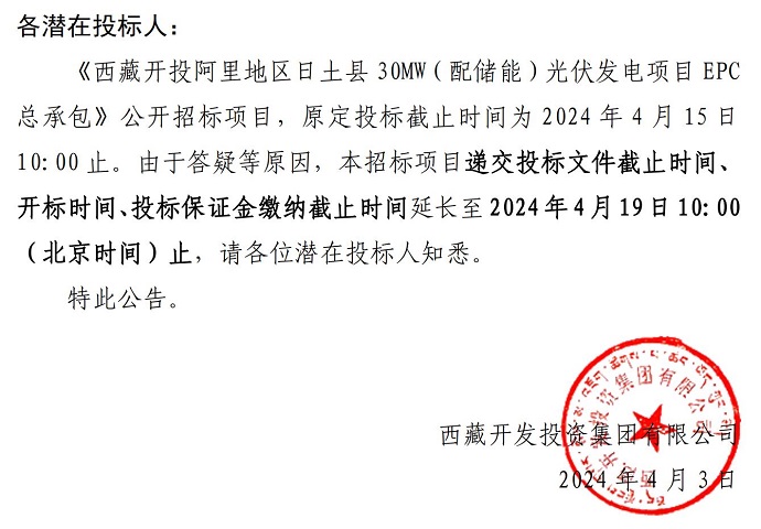 關于延長《西藏開投阿里地區日土縣30MW(配儲能)光伏發電