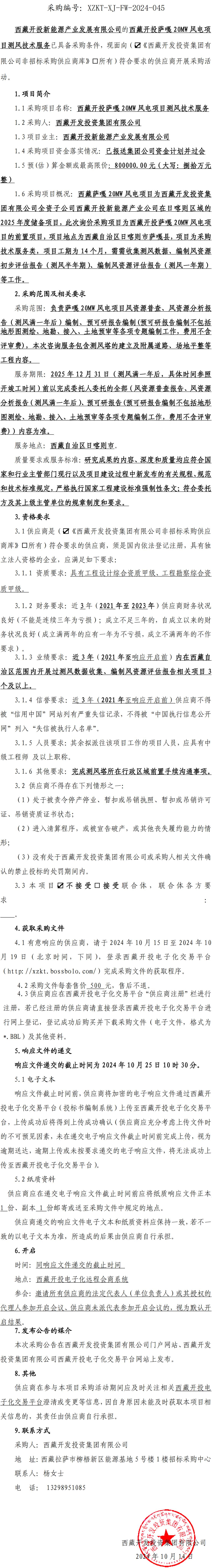 西藏開投薩嘎 20MW 風(fēng)電項(xiàng)目測風(fēng)技術(shù)服務(wù)詢價采購公告