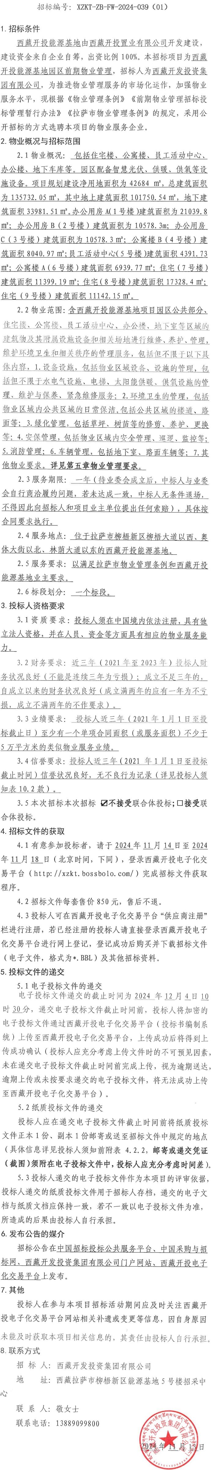 西藏開投能源基地園區前期物業管理招標公告 (第二次 )