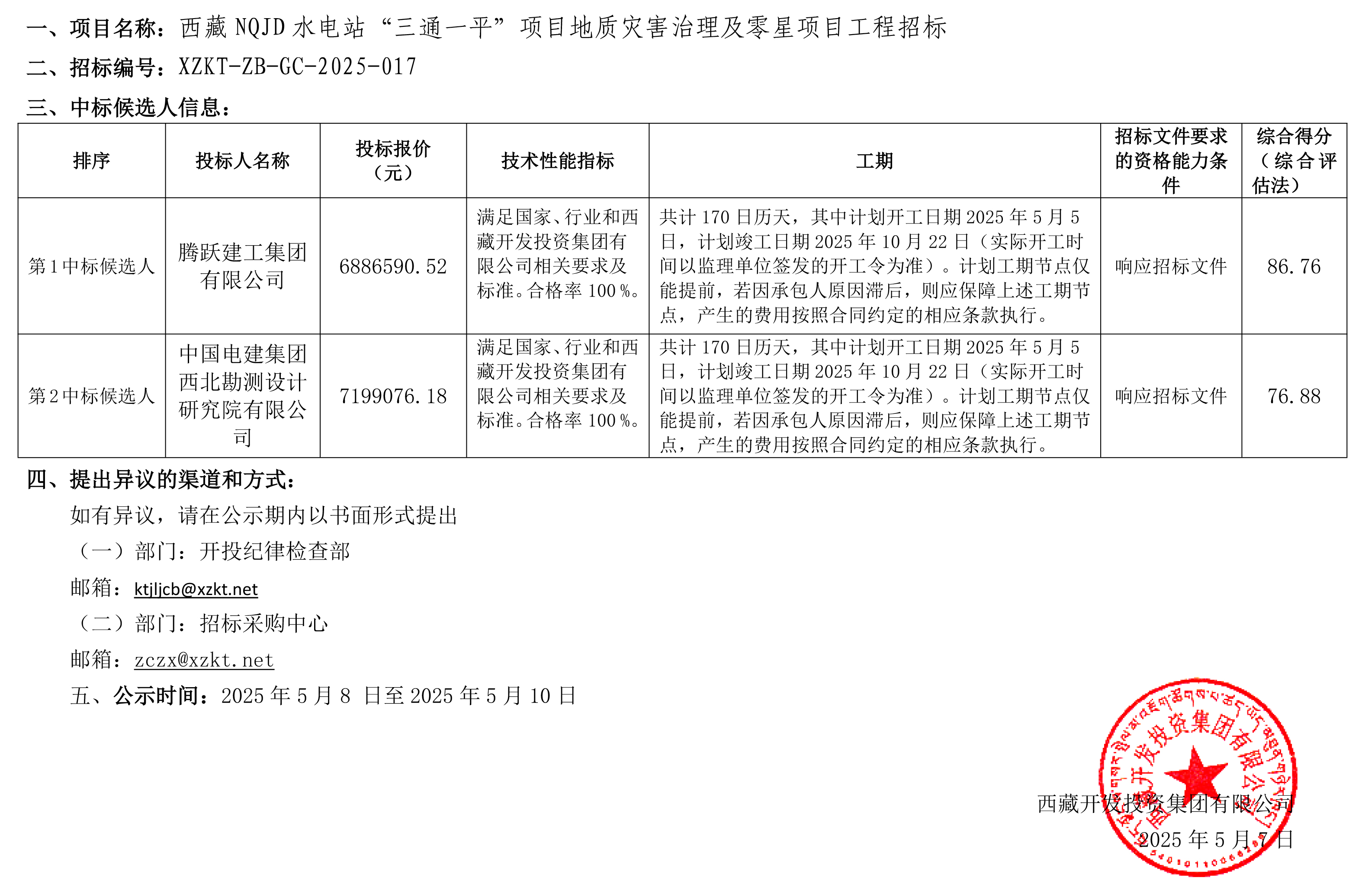 中標候選人公示
