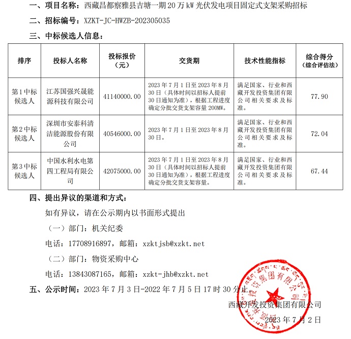 中標候選人公示