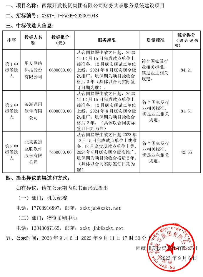 中標候選人公示